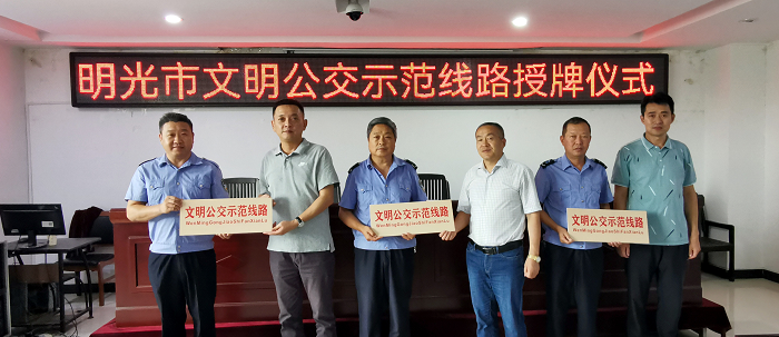 1.明光市交通運(yùn)輸局領(lǐng)導(dǎo)對獲得公交示范線路的公交駕駛員給予高度評價(jià),并提出要求。