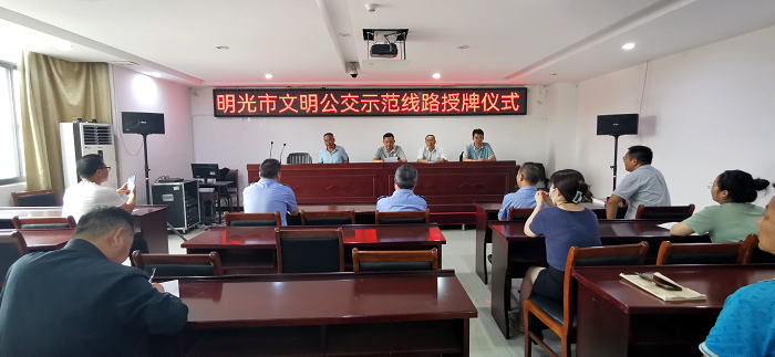 明光城市公交通過為期半年的謀劃、運(yùn)作、考核,層層篩選,于2022年9月中旬順利完成文明公交示范線路的評選、評定工作。 9月13日明光城市公交在明光市交通運(yùn)輸局領(lǐng)導(dǎo)的指導(dǎo)下,在明光汽車站三樓會議室,舉行“文明公交示范線路”授牌儀式,授予明光城市公交3路公交線路為“文明公交示范線路”,并頒發(fā)了示范線路標(biāo)志牌,極大的鼓舞了公交駕駛員的工作熱情,增強(qiáng)了公交駕駛員服務(wù)意識,提升了公交駕駛員服務(wù)水平,為助力明光創(chuàng)建全國文明城市做出了積極的貢獻(xiàn)。